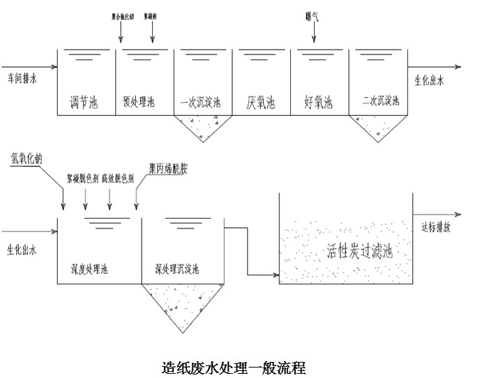 造紙廢水處理應著重于提高循環用水率,減少用水量和廢水排放量,同時也應積極探索各種可靠、經濟和能夠充分利用廢水中有用資源的廢水處理方法。例如:氣浮法可回收白水中纖維性固體物質,回收率可達95%,澄清水可回用;燃燒廢水處理法可回收黑水中氫氧化納、硫化鈉、硫酸鈉以及同有機物結合的其他鈉鹽。中和廢水處理法調節廢水pH值;混凝沉淀或氣浮可去除廢水中大顆粒SS;化學沉淀法可脫色;生物處理法可去除BOD、COD,對牛皮紙廢水較有效。此外,國內外也有采用反滲透、超過濾、電滲析等造紙廢水處理方法。